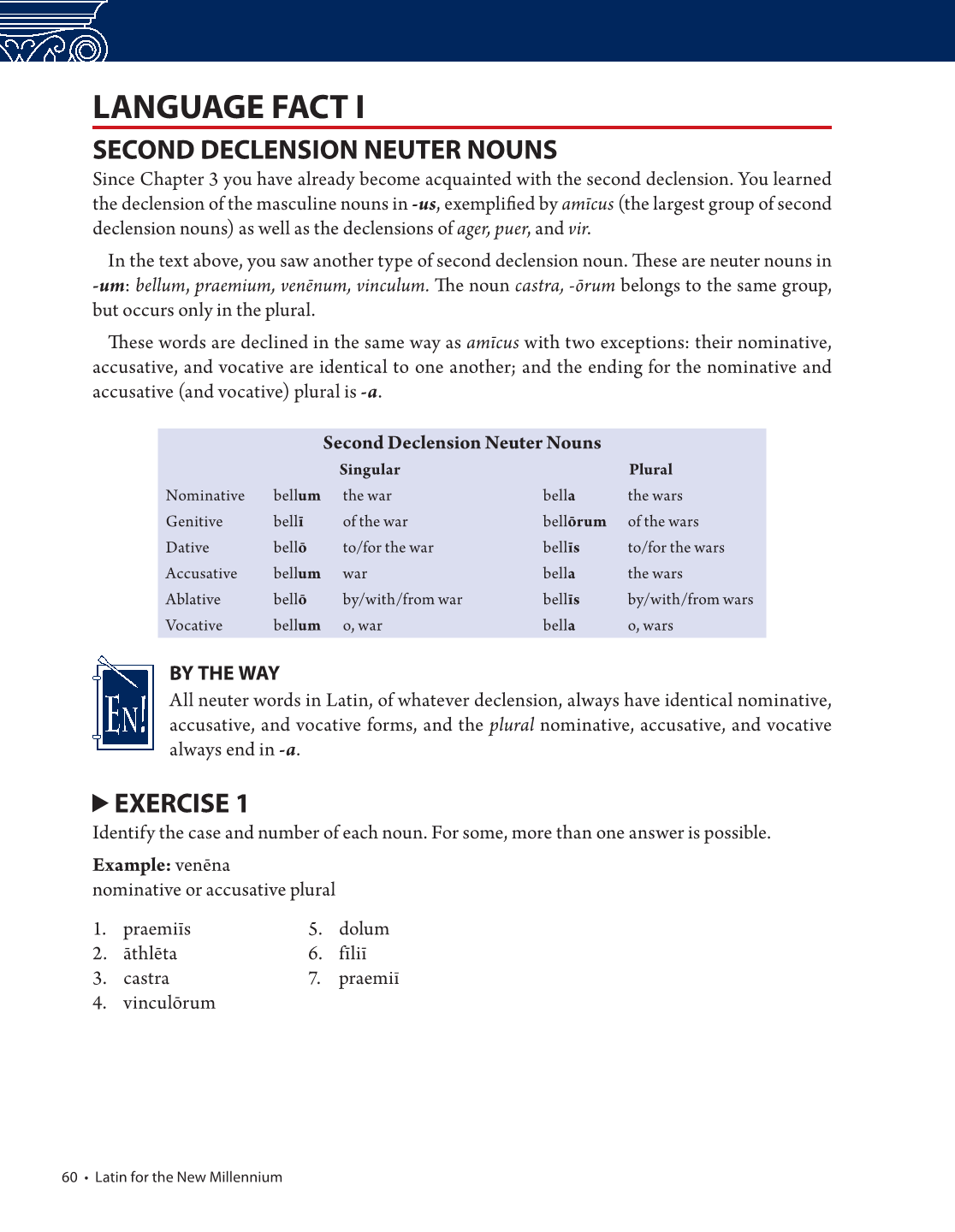 LNM1 Ch 4 Exercise 1: Neuter 2nd Declension Nouns