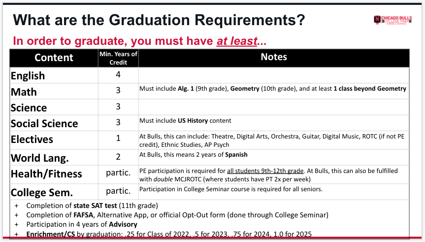 Skim through requirements for each future grade-- what do you notice?