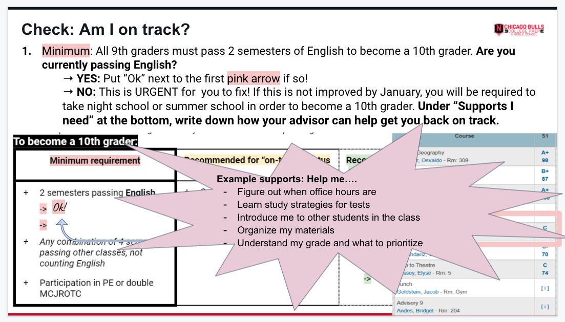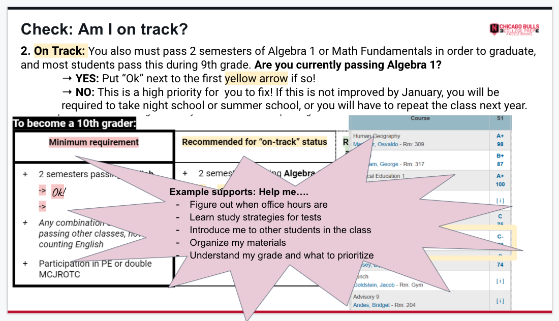 What courses are you recommended pass in order to be "on track" to become a 10th grader? [Check all that apply]