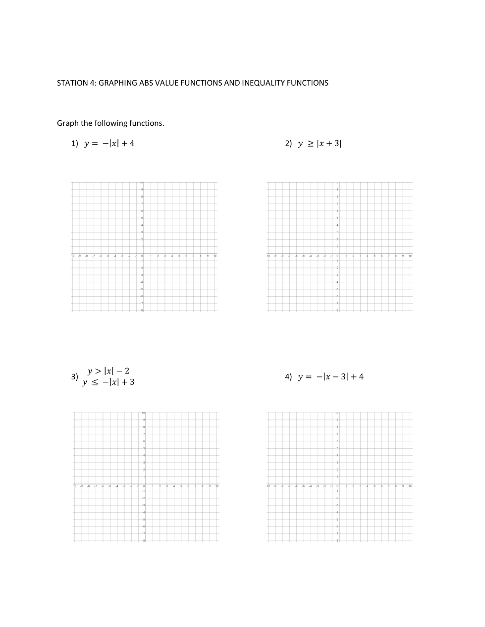Station 4: Graphing Abs Value Functions and Inequality Functions