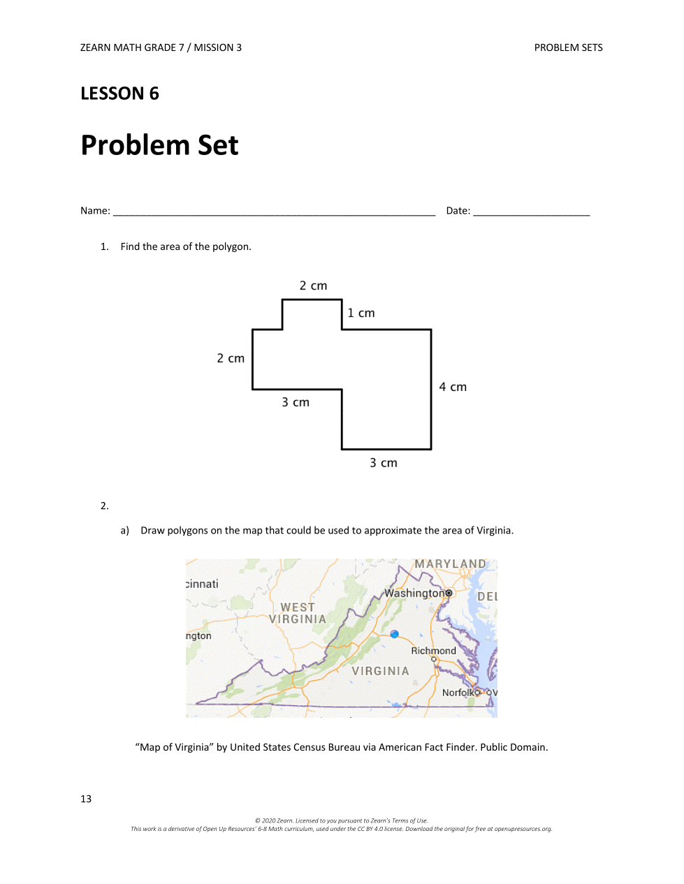 b. Which measurements would you need to know in order to calculate an approximation of the area of Virginia? Label the sides of the polygons whose measurements you would need. (1 point)