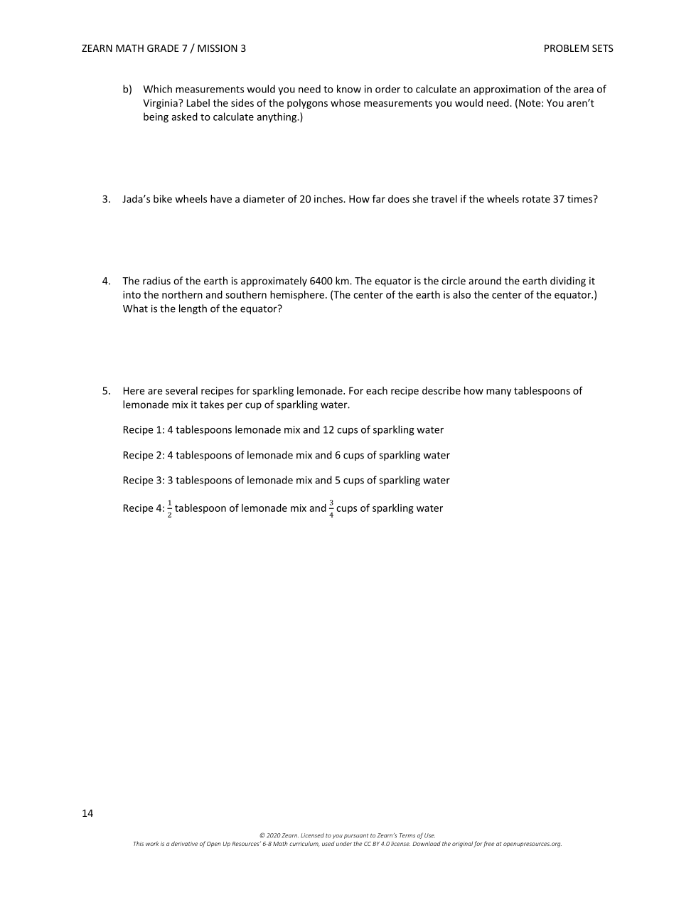 3. Jada's bike wheels have a diameter of 20 inches. How far does she travel if the wheels rotate 37 times?