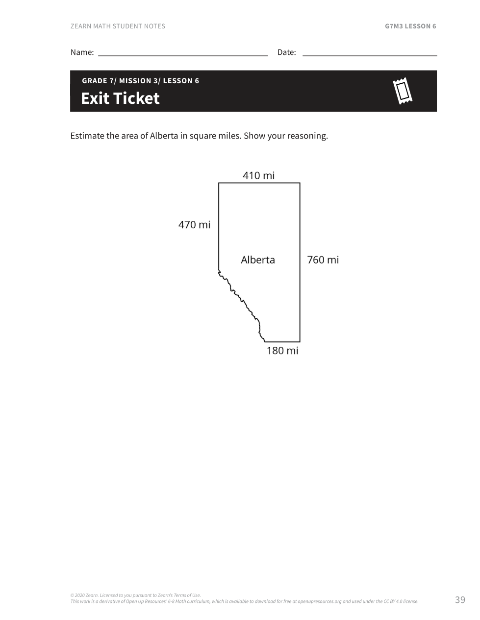 EXIT TICKETEstimate the area of Alberta in square miles. Show your reasoning.