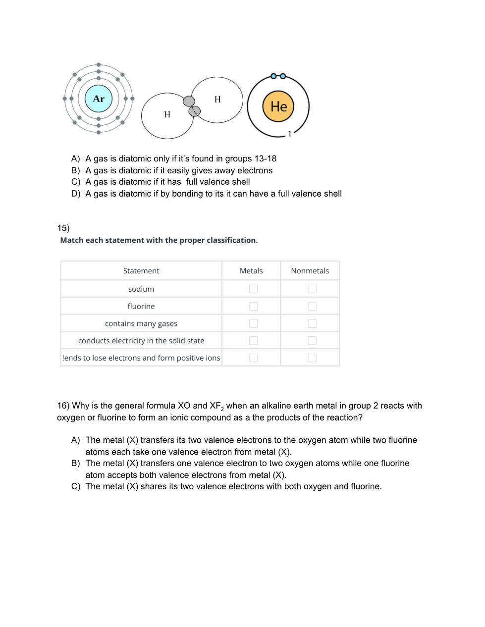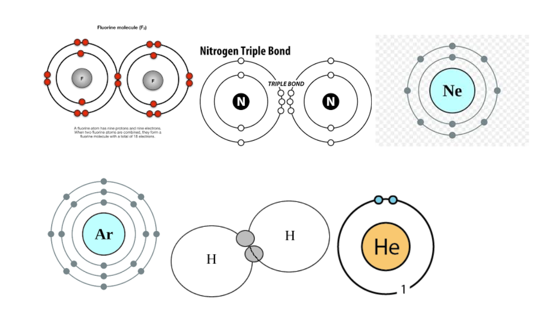 Some gases bond to themselves in nature and are considered diatomic. Look carefully at the Bohr models of the gases below. What is the MOST likely reason for a gas to be diatomic?
