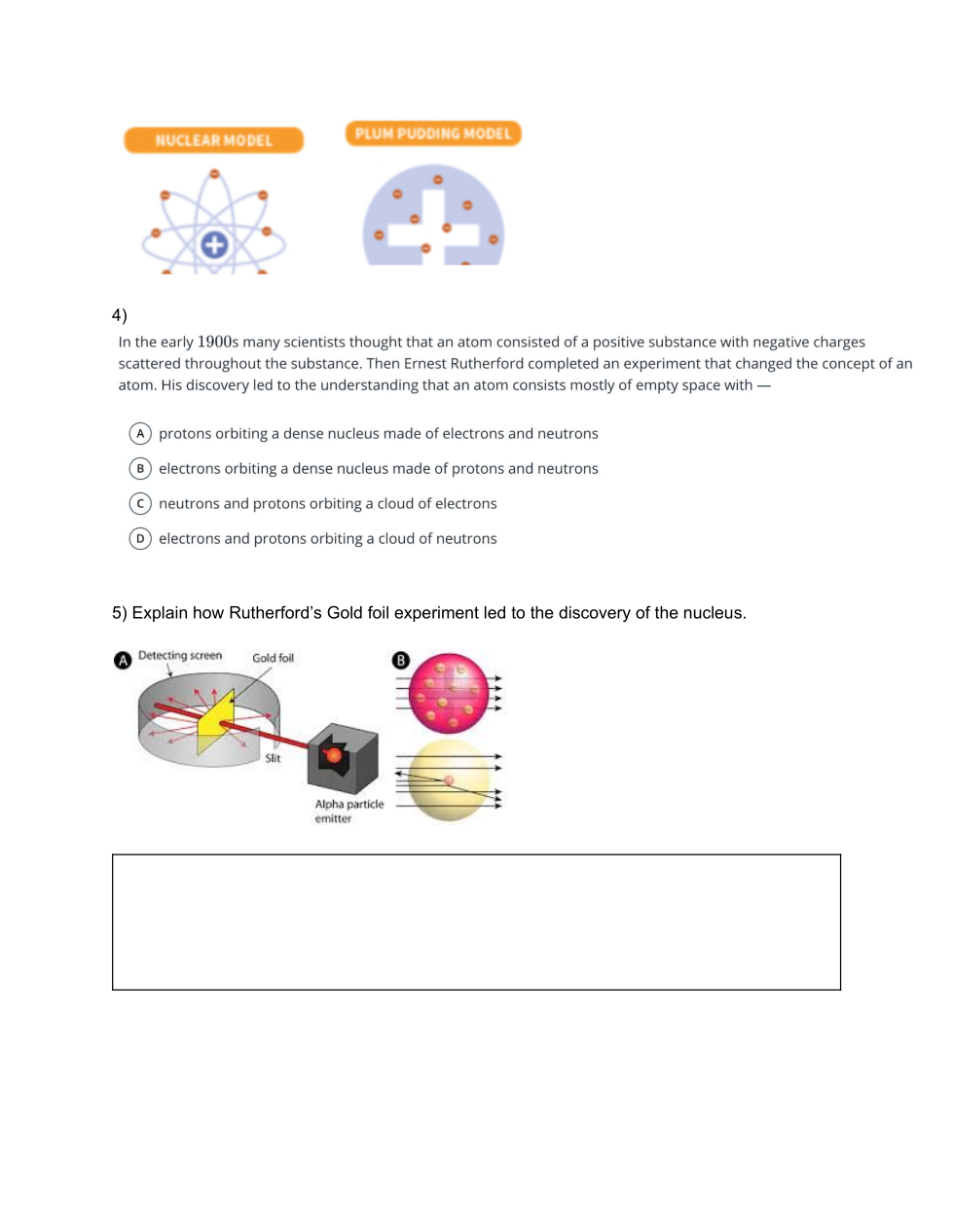 Explain how Rutherford’s Gold foil experiment led to the discovery of the nucleus.