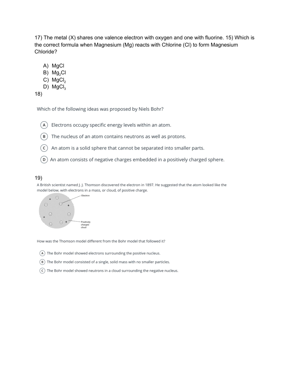Which is the correct formula when Magnesium (Mg) reacts with Chlorine (Cl) to form Magnesium Chloride? HINT: Use the steps for ionic bonding to help you.