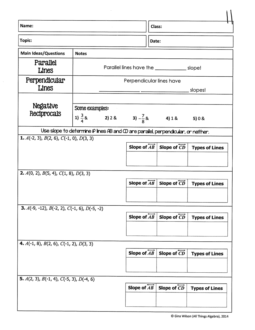 2.4 Comparing Slopes of parallel and perp. lines