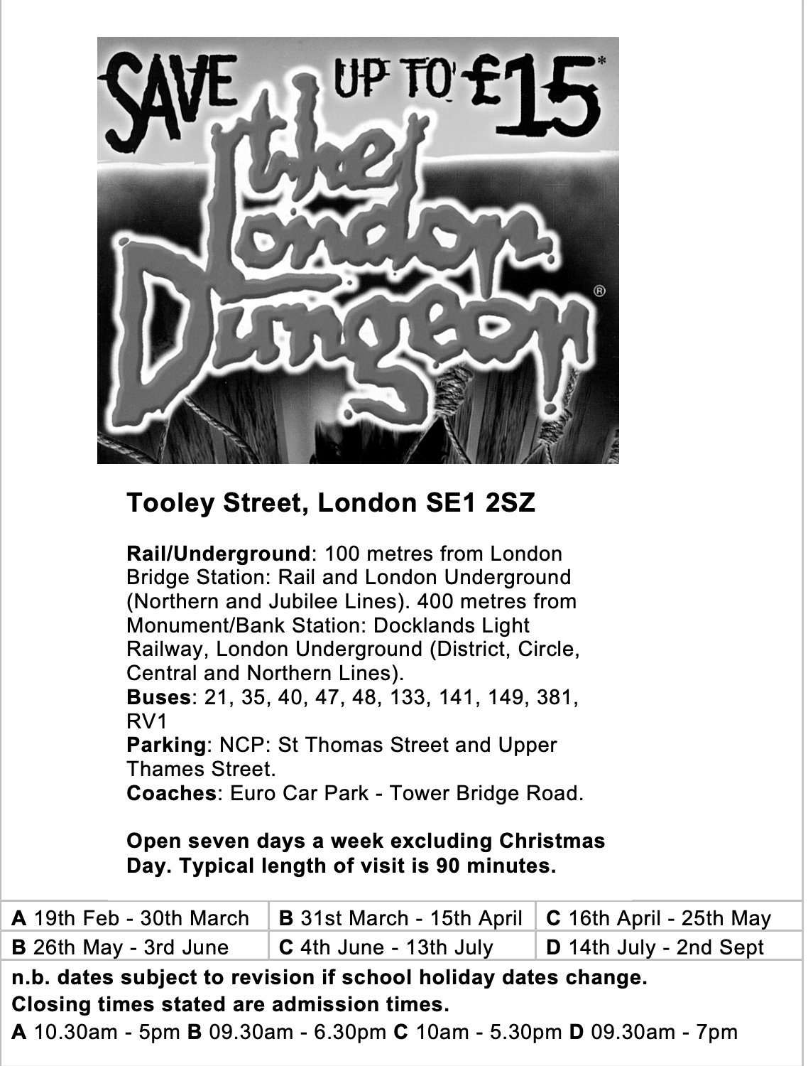 Jullie willen graag om een uur of zes ’s avonds naar de London Dungeon.