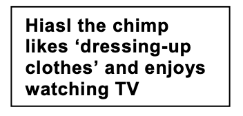 Hiasl the chimp likes ‘dressing-up clothes’ and enjoys watching TV him a video of gorillas,