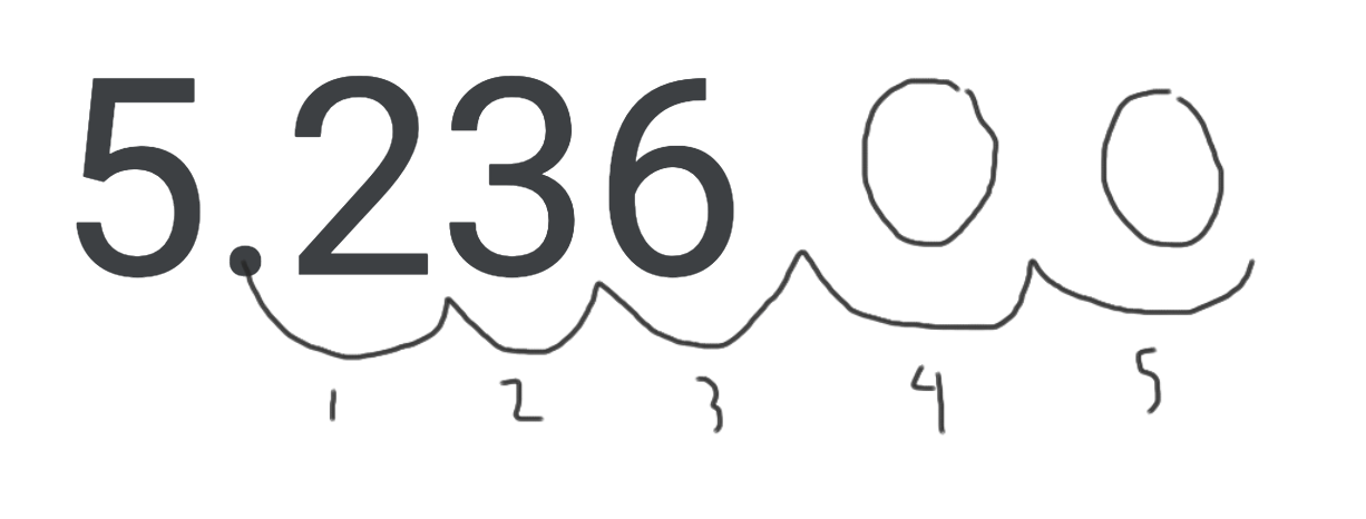 3. Count how many "hops" it takes to move to the right of the first digit. That is your exponent.