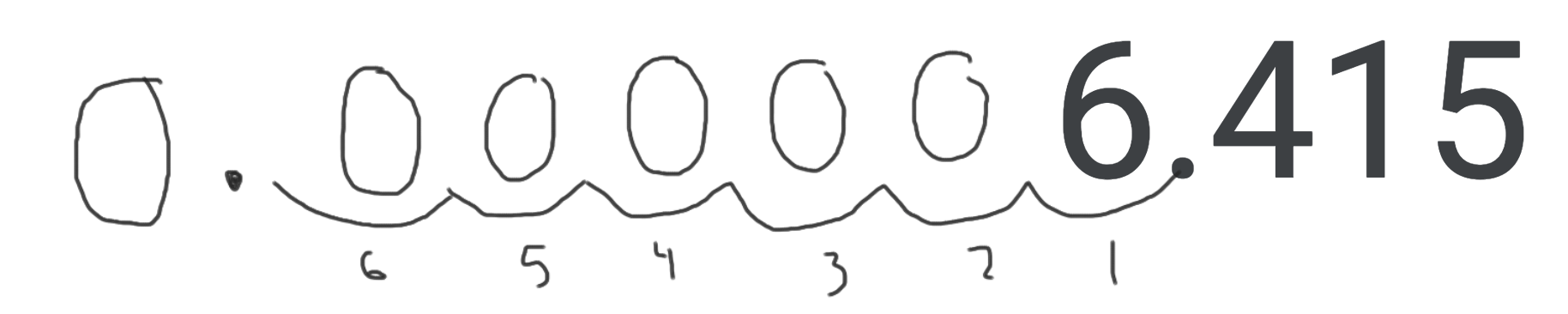 3. Count how many "hops" it takes to move to the right of the first non-zero digit. That is your exponent.
