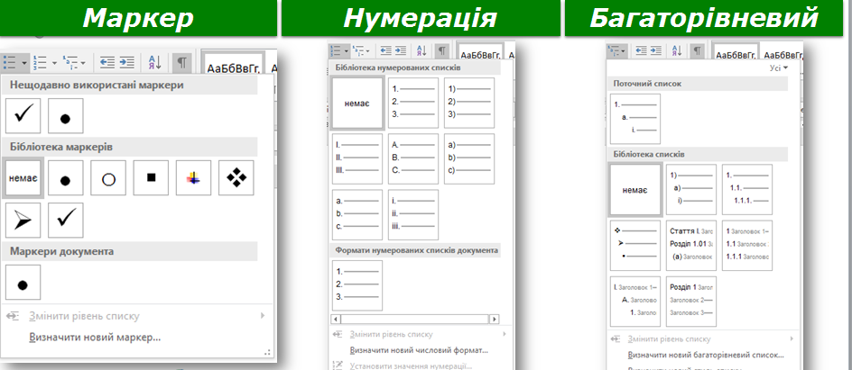 Особливим видом форматування абзаців текстового документа (з певним переліком слів) оформлення їх у вигляді
