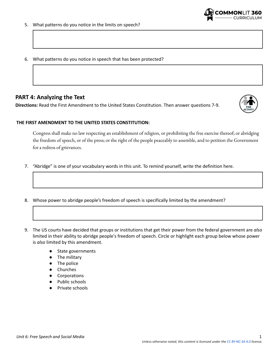 The US courts have decided that groups or institutions that get their power from the federal government are also limited in their ability to abridge people's freedom of speech.