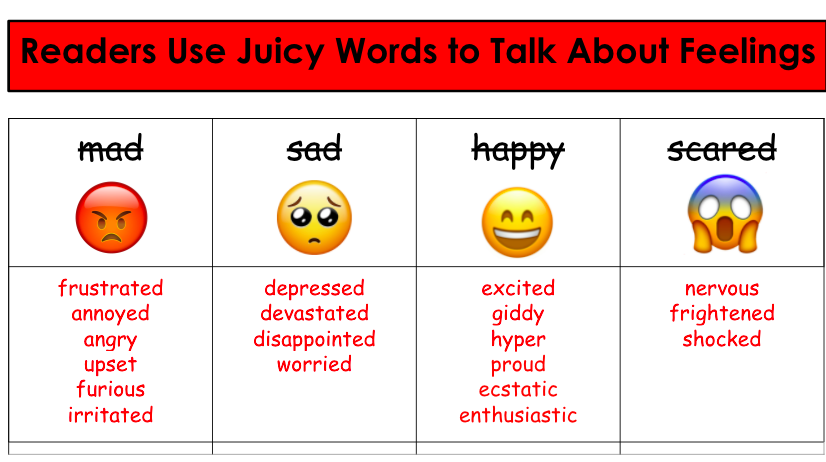 Using the feelings chart above what juicy words can you use to describe Jamaica's feelings in the beginning of the story