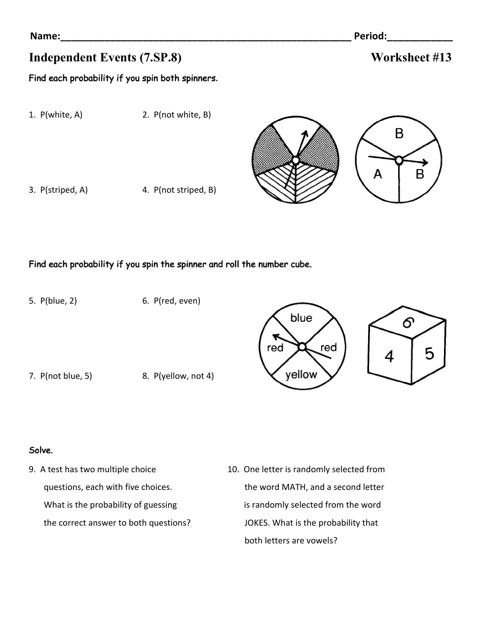 712LRIS WS#13 (Tan) Independent and Dependent Probability