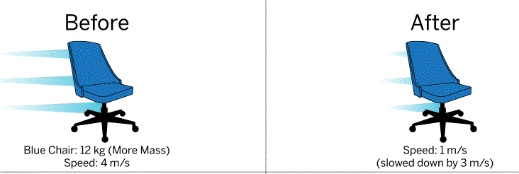 In this image, what is the change in speed for the Blue Chair?
