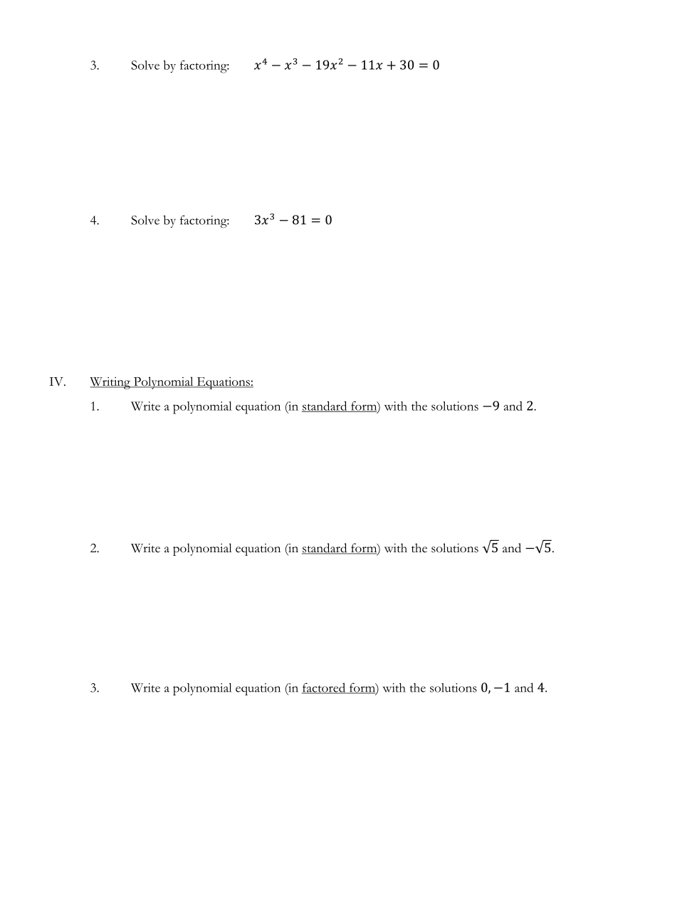 Write an equation in factored form with the solutions 0, -1, and 4.