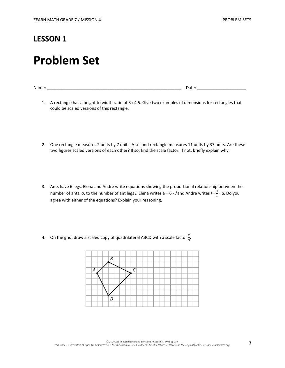 4. On the grid, draw a scaled copy of quadrilateral ABCD with a scale factor of 2/3.