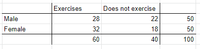 If an office member is selected at random, what is the probability that they are a female and exercise? Give your answer as a percentage.