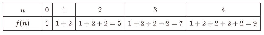 f(n) = f(n-1) + 1/2, f(0) = 1