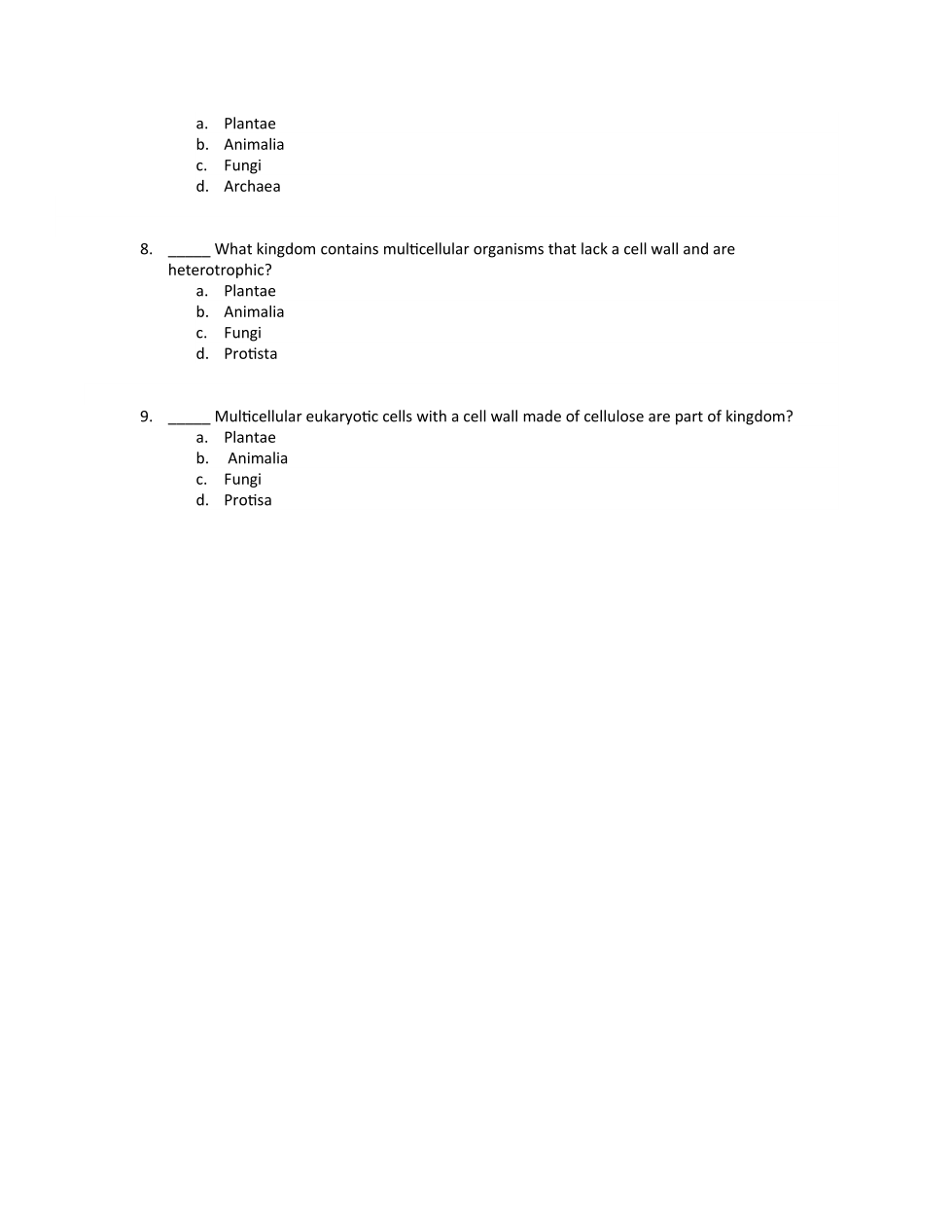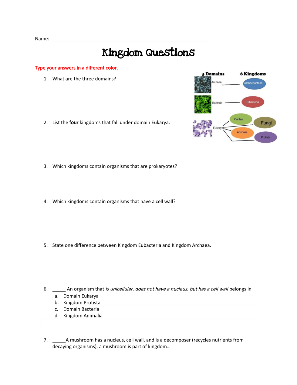List the four kingdoms that fall under domain Eukarya