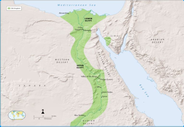 This map shows the features of ancient Egypt. Which inference is supported by the information in the map?