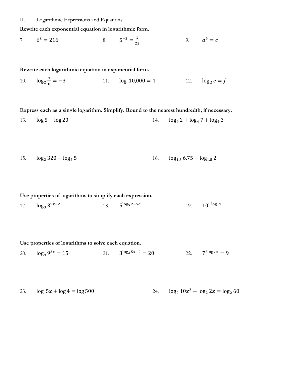 Rewrite ab = c as a logarithmic equation.