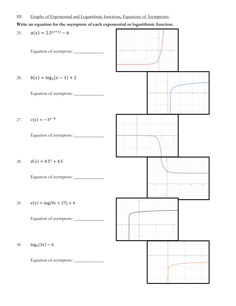 Write an equation for the asymptote of f(x).