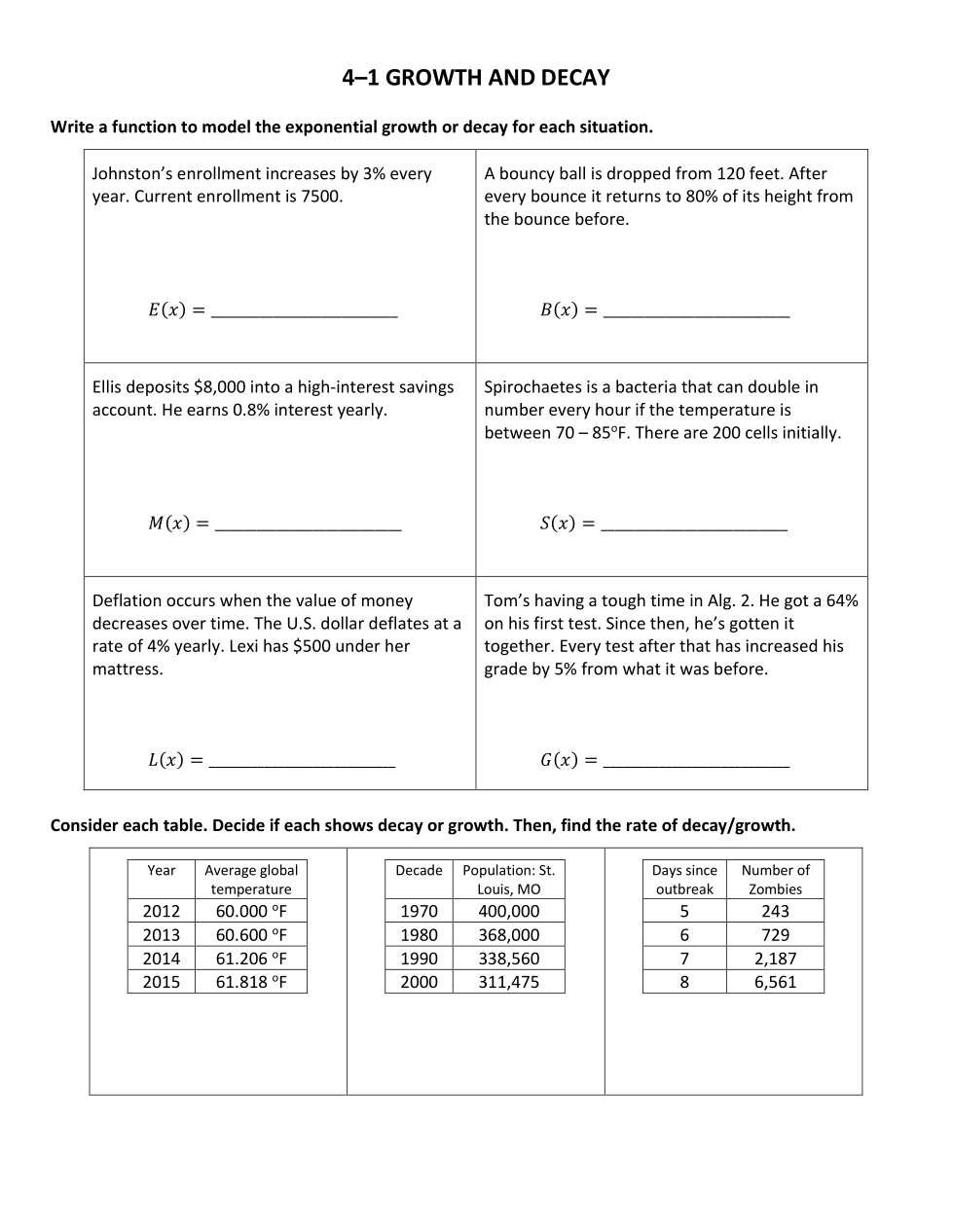 Does the table show growth or decay?