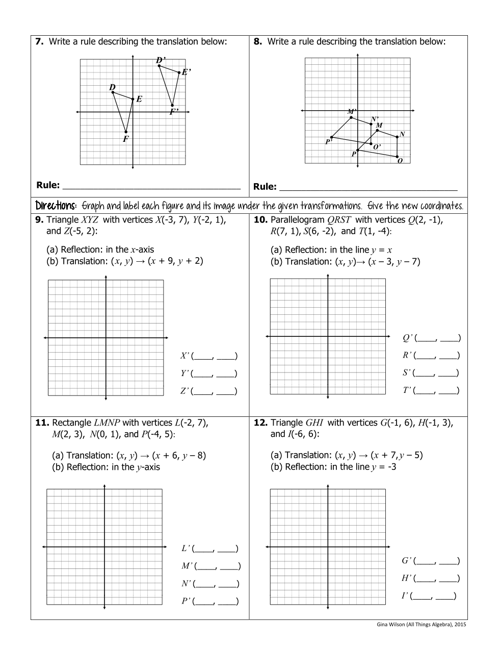 3. Write rule (x,y)-->(x+h,y+k)