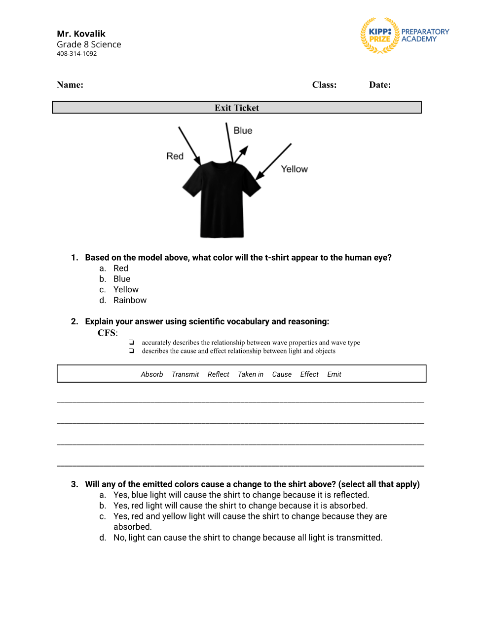 Will any of the emitted colors cause a change to the shirt above? (select all that apply)