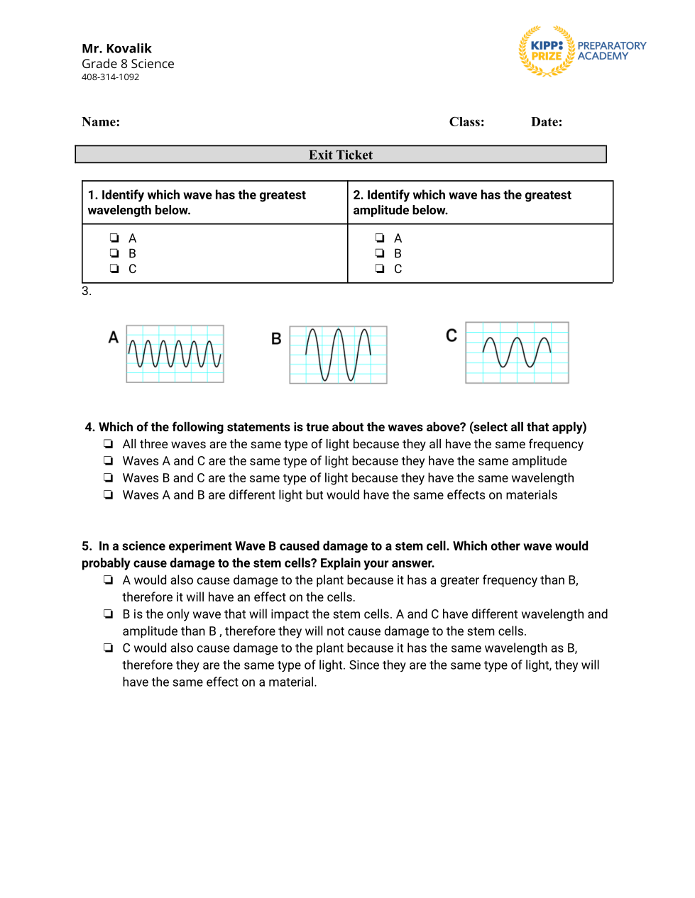 In a science experiment Wave B caused damage to a stem cell. Which other wave would probably cause damage to the stem cells? Explain your answer.