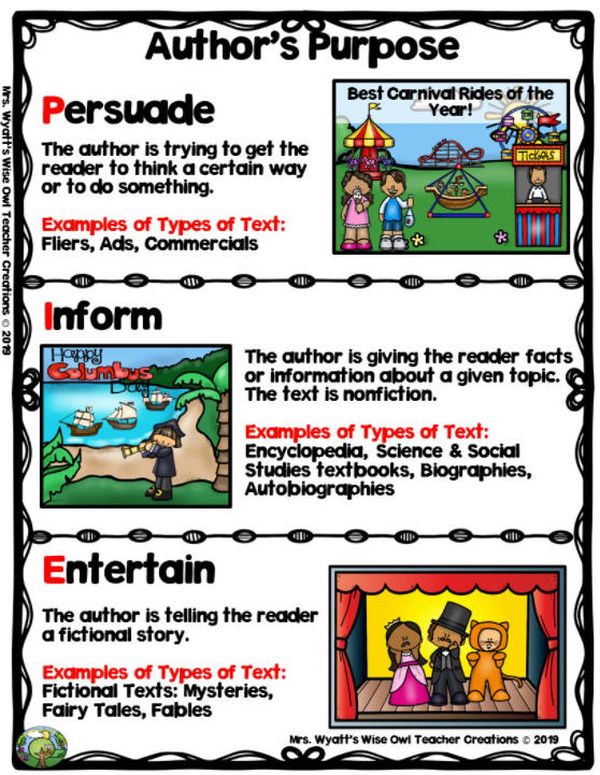 Think about your book and tell me what you think the author's purpose is for writing this book. To persuade? To entertain? To inform?