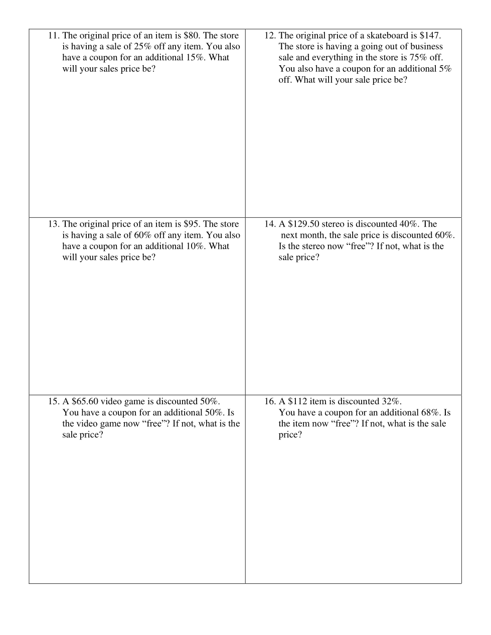 Set up a Proportion for:If an item having an original price of $812 is discounted by 13%, what is the sales price?Use x for your variable.