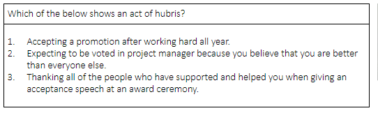 Macbeth’s hubris can be seen when he…