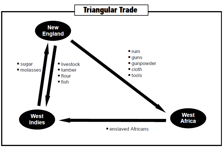 Use the chart above to infer the answer. Which of the following was a key part of the Triangular Trade Route?