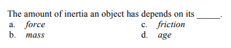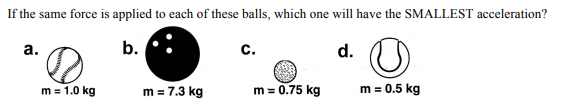 Newton’s 1st Law of Motion | arrow_right_alt | An object's acceleration depends on its mass the the force applied. |