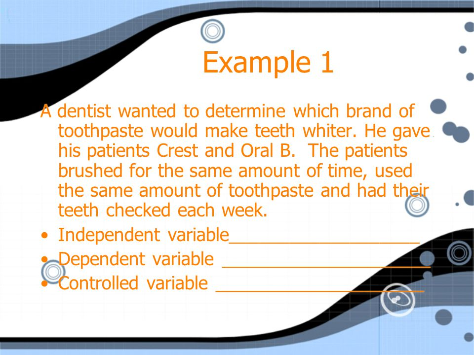 Independent Variable | arrow_right_alt | Brushing the same amount of time and using the same amount of toothpaste |
