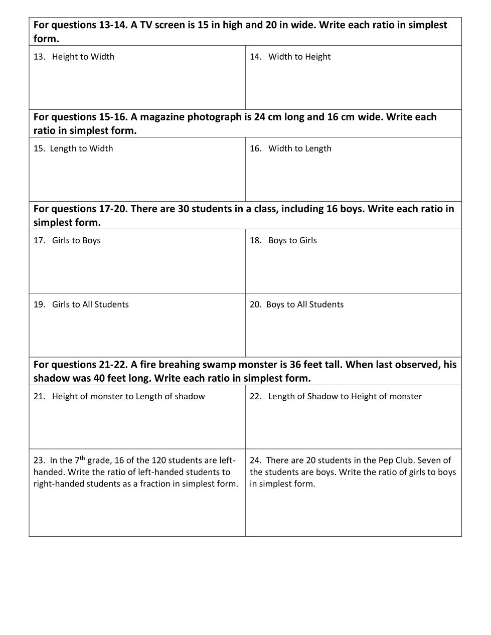 Write the ratio of length of shadow to height of monster as a fraction in simplest form.