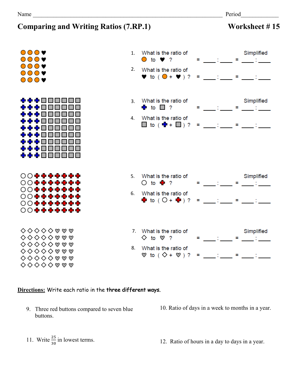 Write the ratio of hearts to the total of circles and hearts in simplest form.
