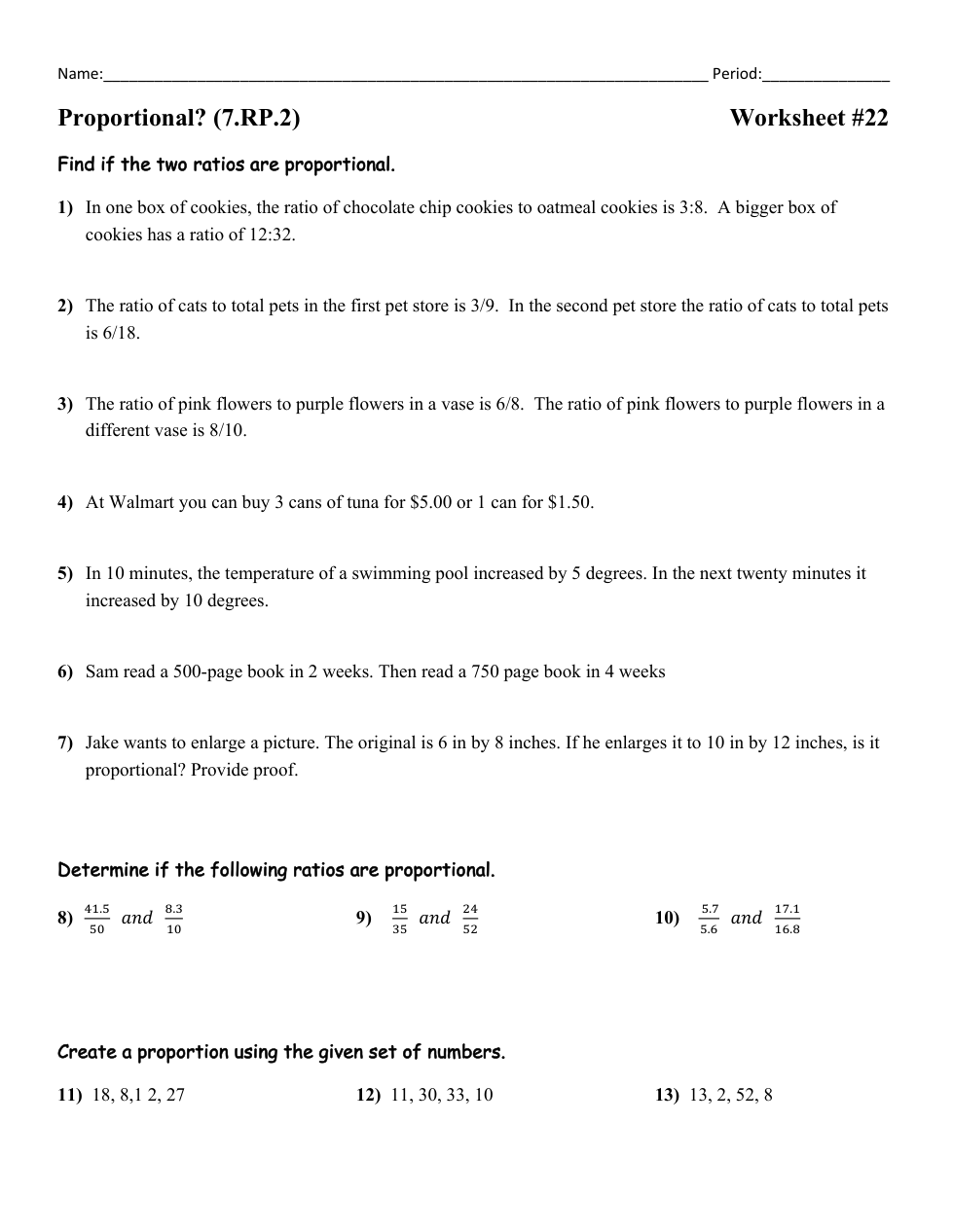 Jake wants to enlarge a picture. The original is 6 inches by 8 inches. If he enlarges it to 10 inches by 12 inches, is it proportional? Provide proof on your paper.