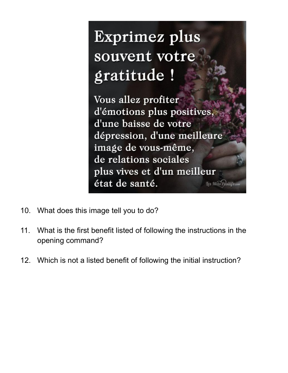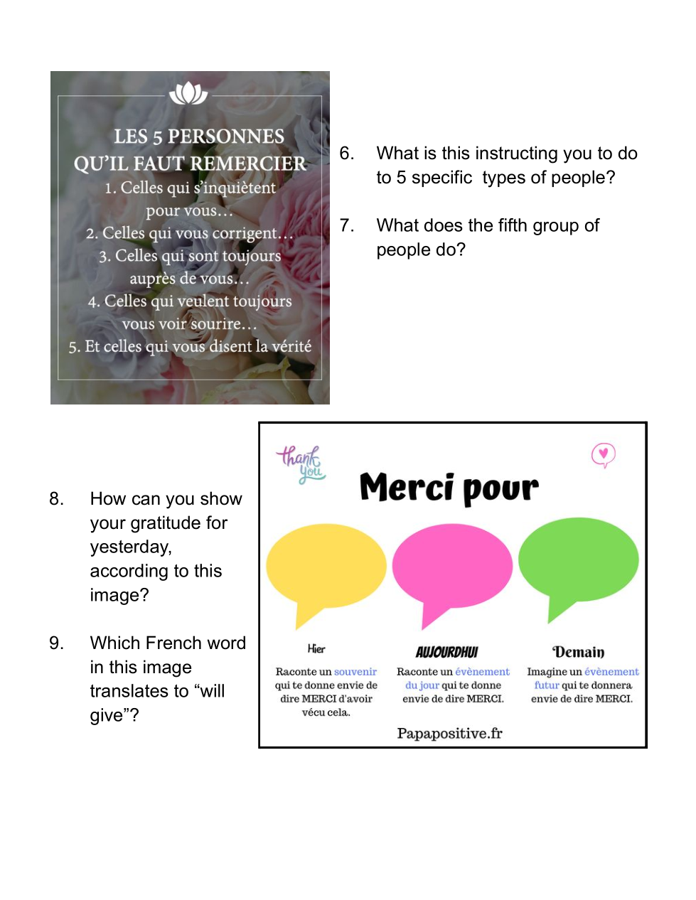Reading comprehension for Gratitude, using Pinterest images.