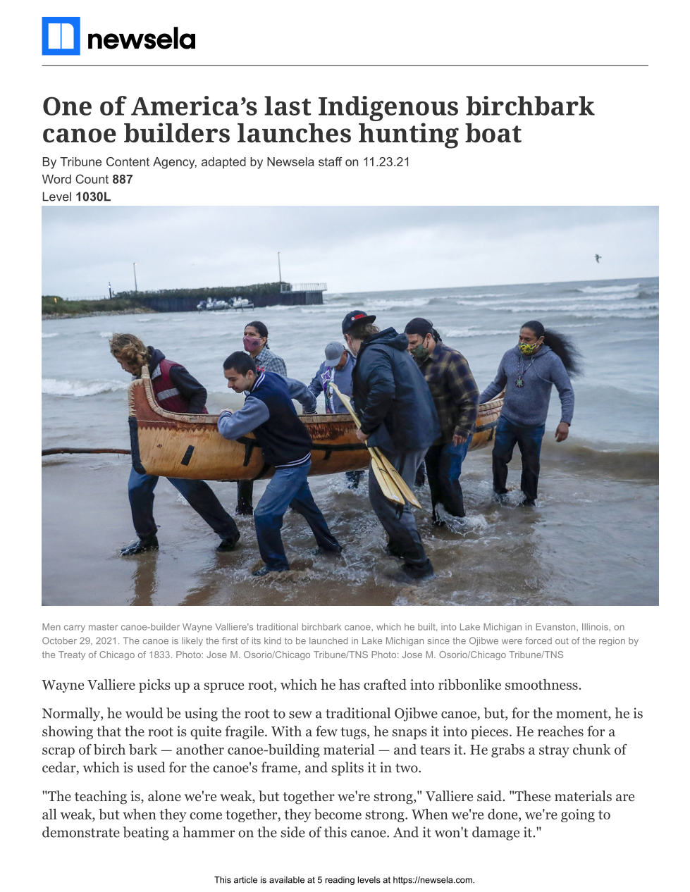 7th Grade: NewsELA: One of America’s last Indigenous birchbark canoe builders launches hunting boat