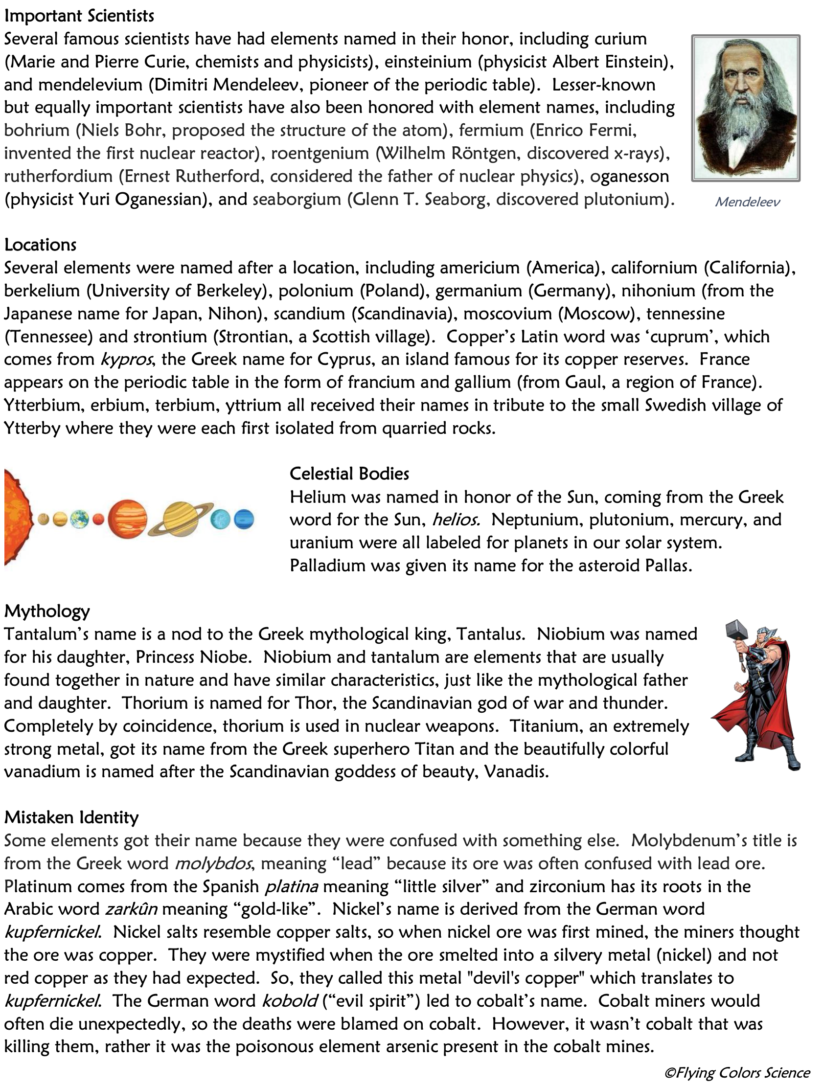 G) Selene is the Greek word for moon. Which element was named for the moon? _____________
