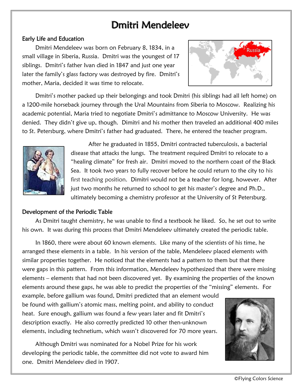 D) When he was a young, what challenges did Mendeleev's family face? __________