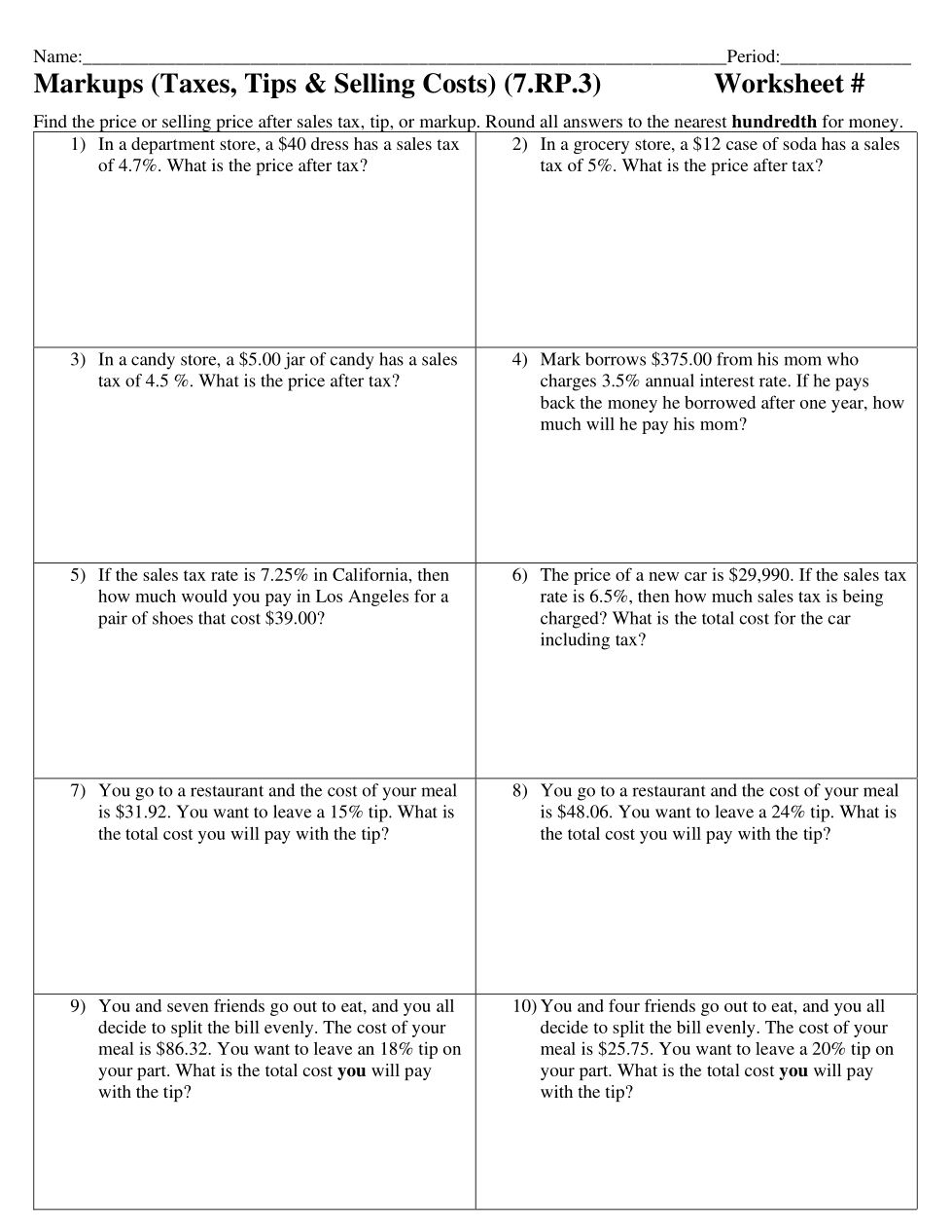 7LRIS Honors WS #21 - Blue Markups (Taxes, Tips, & Selling Costs)