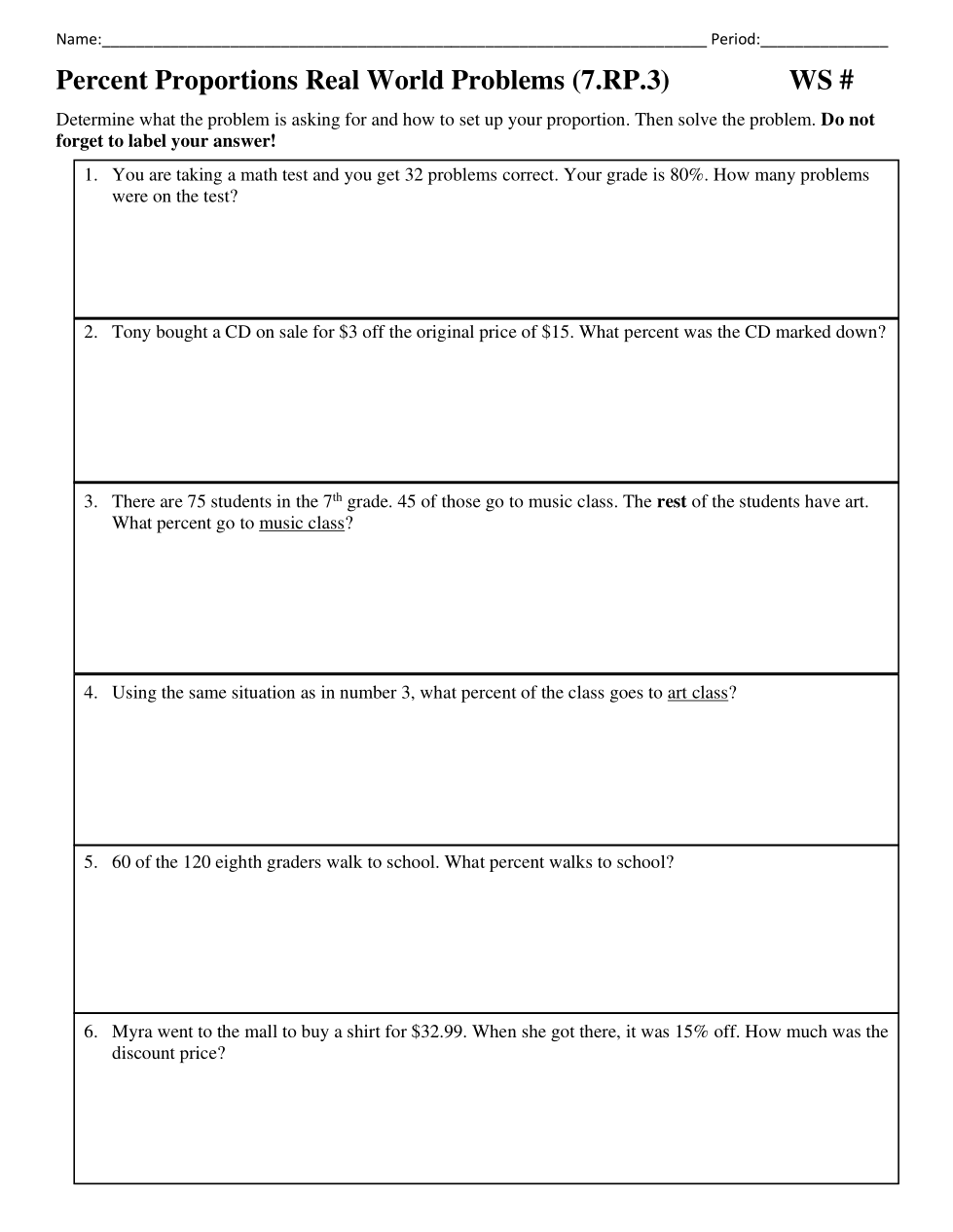 7LRIS Honors WS #23 - Purple Percent Proportions Real-World Problems