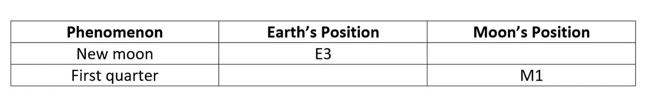 If the moon is at M2, then what position will the Earth need to be at for a full moon?