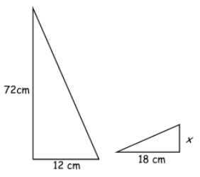 Find the missing measurement, in order for the figures to be similar.Write answer like: x=1 cm
