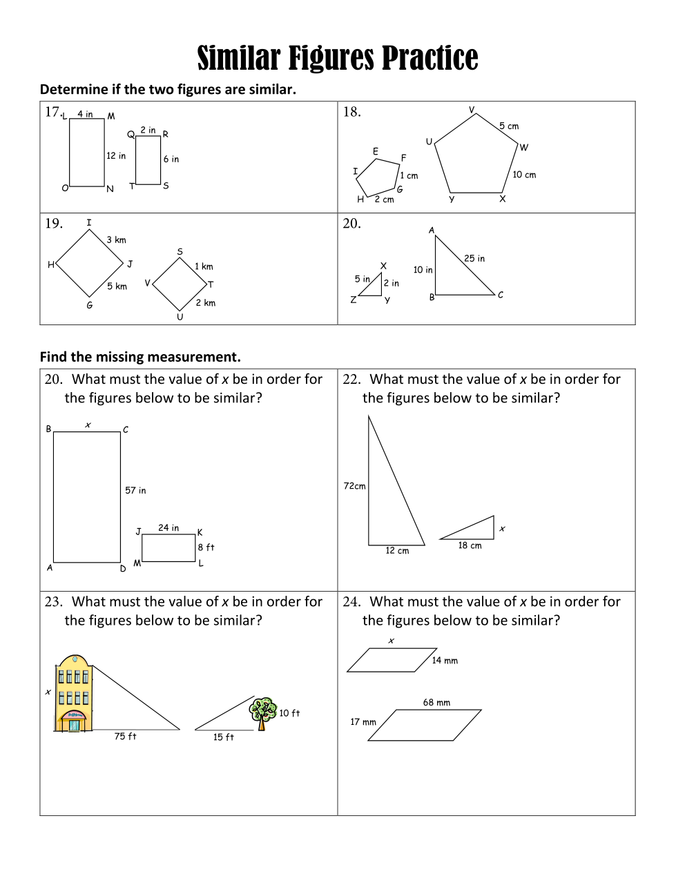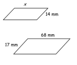 Find the missing measurement, in order for the figures to be similar.Write answer like: x=1 mm